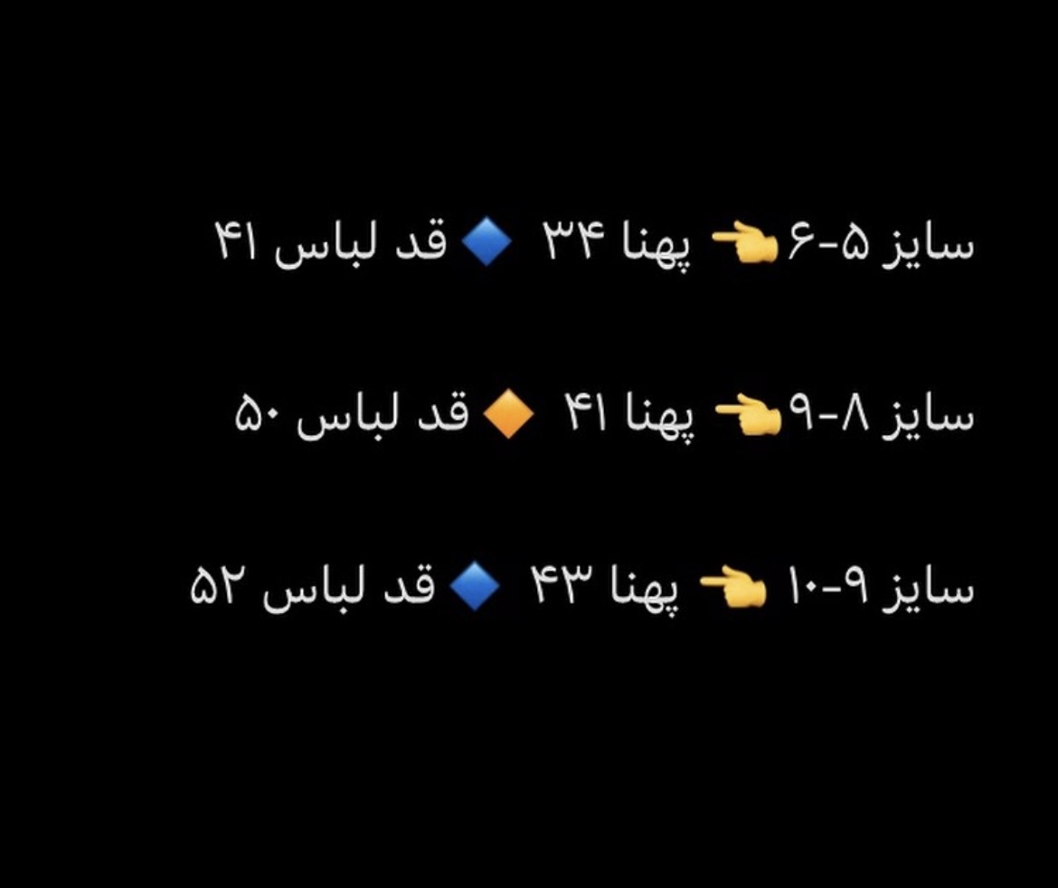 | سایز | ۵-۶ سال, ۸-۹ سال, ۹-۱۰ سال |